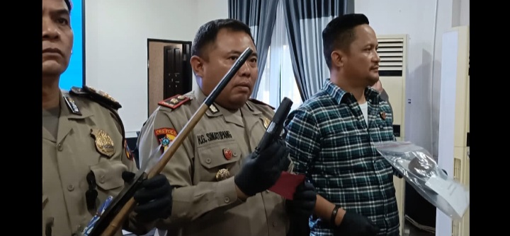 Medan - Edi Suranta Gurusinga alias Godol diamankan di objek wisata Desa Durin Jangak, Dusun Pulau Sari Kecamatan Pancurbatu, Kabupaten Deli Serdang atas kepemilikan senjata api.