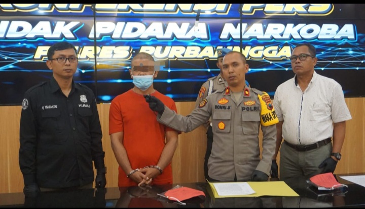 Wakapolres Purbalingga Kompol Donni Krestanto saat memberikan keterangan, Selasa (9/4/2023) mengatakan pihaknya berhasil mengungkap kasus penyalahgunaan narkotika jenis sabu. Tersangka yang diamankan yaitu S (44) warga Kecamatan Bukateja, Kabupaten Purbalingga.