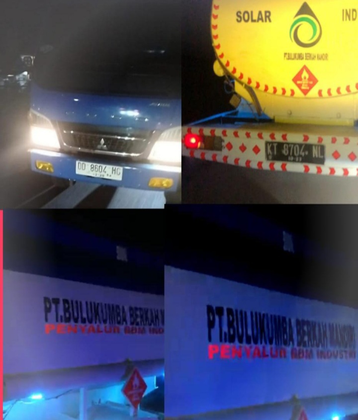 Wajo - Mobil Tangki PT Bulukumba Berkah Mandiri yang bertuliskan penyalur BBM industri yang di duga ilegal sedang melintas di wilayah hukum Polres Wajo, Provinsi Sulawesi Selatan pada hari Sabtu sekitar pukul 01.00 Wita 20 April 2024 .
