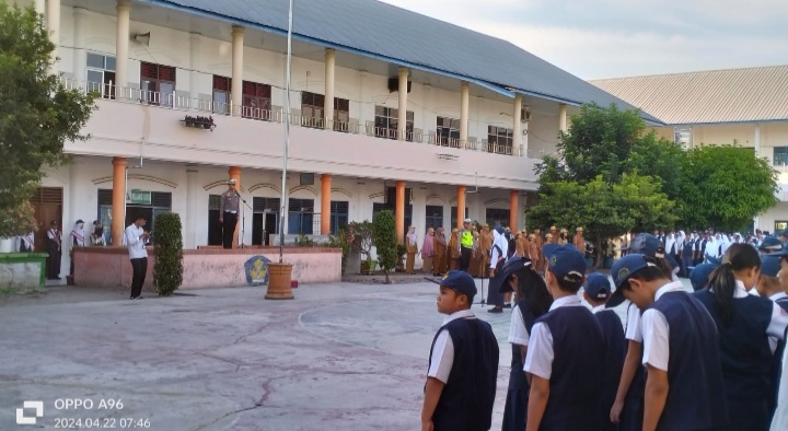 Tebing Tinggi - Dalam rangka menekan pelanggaran lalu lintas dan menurunkan angka kecelakaan lalu lintas, Sat Lantas Polres Tebing Tinggi memberikan sosialisasi tertib berlalu lintas di SMP Negeri 1 Jalan Sutomo Kota Tebing Tinggi, Senin (22/04/24).