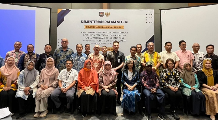 Mataram - Ditjen Bina Pembangunan Daerah Kemendagri menyelenggarakan rapat sinergi antara pemerintah daerah dengan Dewan Perwakilan Rakyat Daerah (DPRD) Provinsi Nusa Tenggara Barat guna membahas percepatan penyusunan dan penetapan rencana tata ruang guna mendukung investasi di Kawasan Ekonomi Khusus (KEK) dan Kawasan Industri (KI) yang diselenggarakan secara hybrid di Prime Park Hotel & Convention Mataram, Kamis (25/4/2024).
