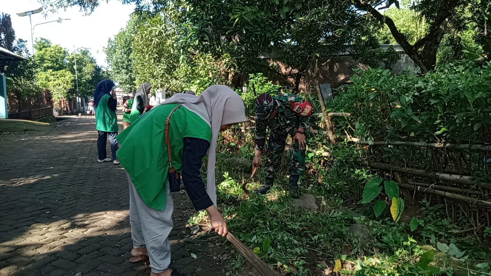 Gowa - Dalam rangka menjaga lingkungan dan antisipasi timbulnya wabah penyakit Koramil 1409-01/Somba Opu Kodim 1409/Gowa melaksanakan Karya Bakti yang dilaksanakan di Dusun Macinna Desa Jenemadinging Kecamatan Pattallassang Kabupaten Gowa, Minggu (28/4/2024).