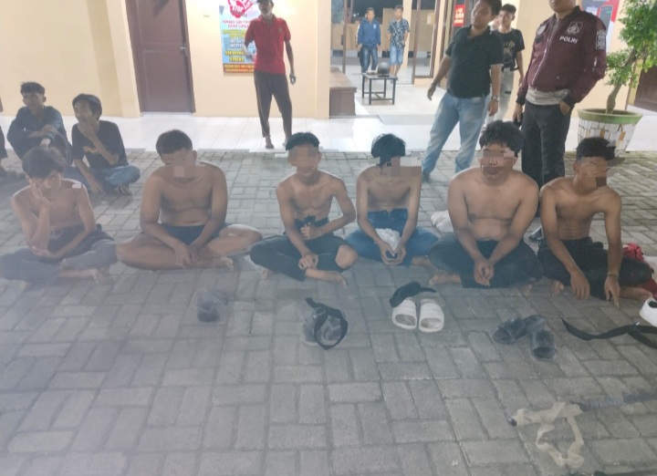 "Bersama ke-6 anggota geng motor, turut diamankan barang bukti berupa, 5 unit sepeda motor, 1 pedang garaga, 1 besi panjang, dan 4 botol kaca kosong," ujarnya.