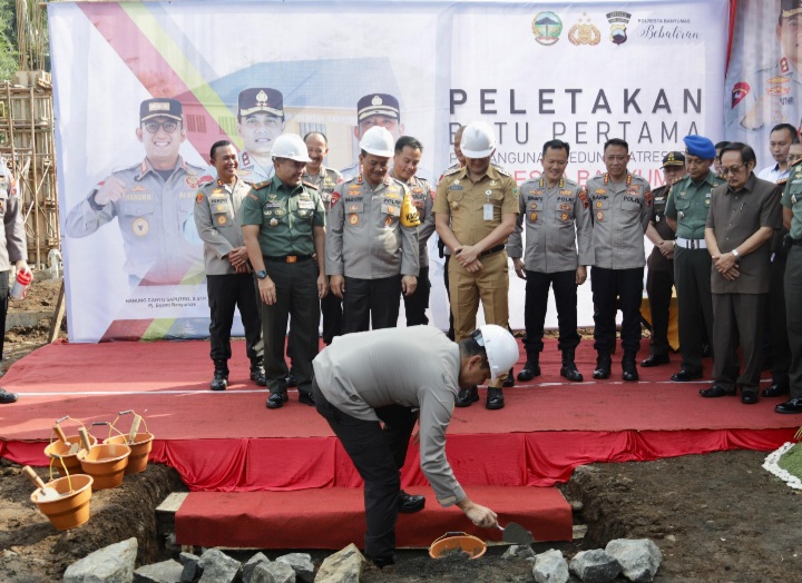Banyumas - Kapolda Jawa Tengah Irjen Pol Ahmad Luthfi, bertempat di Jl. Letjend. Pol. R. Sumarto Kec. Purwokerto Utara Kabupaten Banyumas melakukam peletakan batu pertama pembangunan Gedung Sat Reskrim Polresta Banyumas, pada Senin (29/4/24).