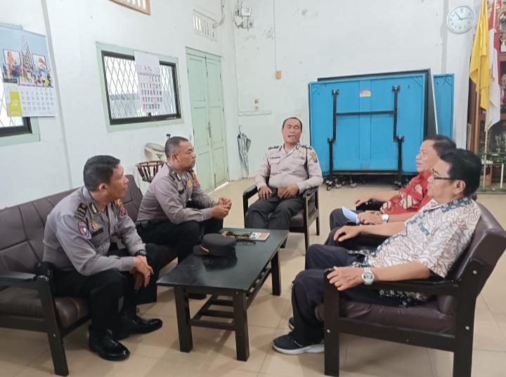 Tebing Tinggi - Saat pelaksanaan patroli sambang ke sekolah, Satuan Binmas Polres Tebing Tinggi turut meningkatkan koordinasi kepada setiap Kepala Sekolah yang disambangi dalam kegiatan seperti yang dilakukan di SMA Swasta Perguruan Ir H Djuanda Jalan Thamrin Kota Tebing Tinggi, Selasa (07/05/24).