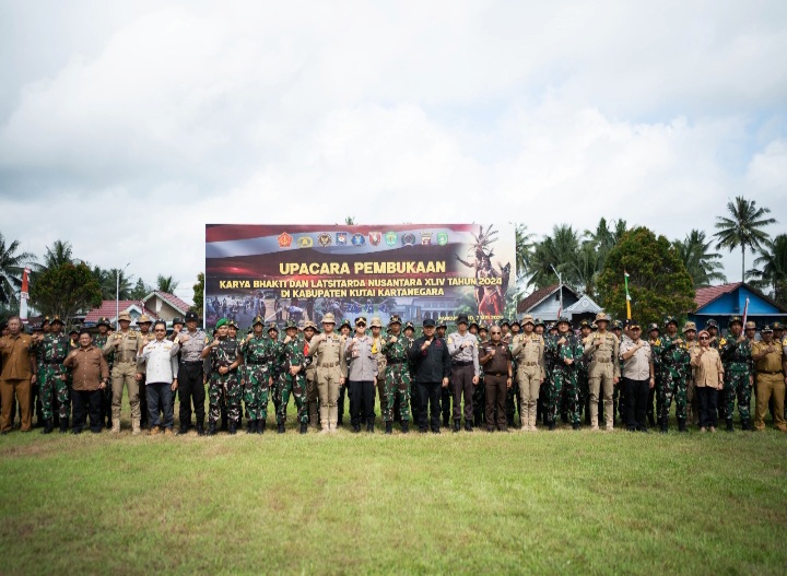 Kutai Kartanegara - Didampingi Dandim 0906/Kutai Kartanegara (Kkr) Letkol Czi Damai Adi Setiawan dan Danyontar Wreda Mentar Akmil, Letkol Kav Mohammad Nashir, Bupati Kutai Kartanegara (Kukar), Drs. Edi Damansyah membuka kegiatan Latihan Integrasi Taruna Wreda (Latsitarda) Nusantara XLIV tahun 2024 yang diimplementasikan melalui kegiatan Karya Bhakti TNI bertempat di lapangan bola desa Bangun Rejo kecamatan Tenggarong Seberang kabupaten Kukar, Selasa (07/05/2024).