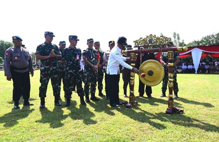 Sragen - Kodim 0725/Sragen menggelar kegiatan upacara pembukaan TNI Manunggal Membangun Desa atau disingkat TMMD Sengkuyung tahap II tahun 2024 di Lapangan Silibau Ds. Jekawal Kecamatan Tangen Kabupaten Sragen, Rabu (08/05/2024).