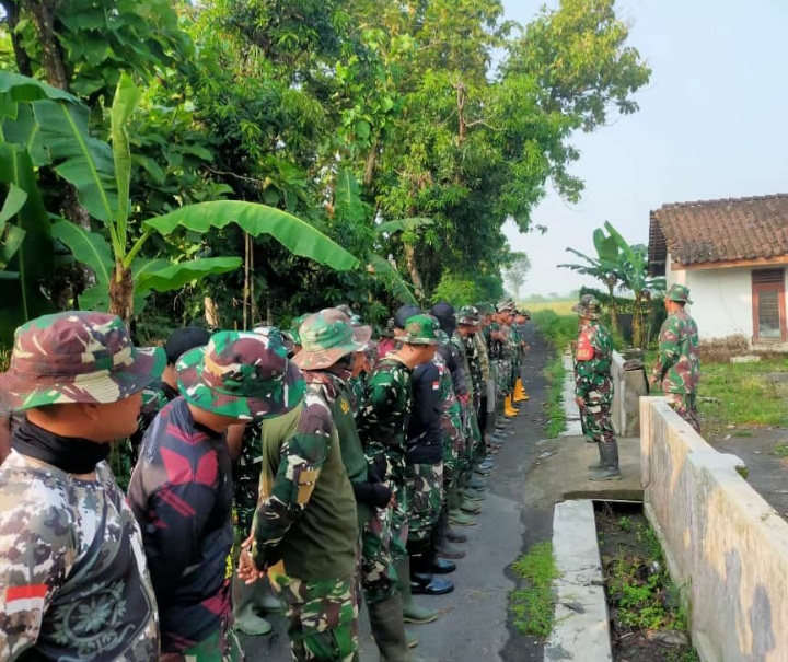Sukoharjo - Pelaksanaan TMMD Reguler ke -120 Kodim 0726/Sukoharjo yang dilaksanakan di Desa Wirun Kecamatan Mojolaban melibatkan sekitar 150 personel gabungan TNI - Polri dan warga masyarakat. Sebelum memulai kegiatan, anggota Satgas TMMD melaksanakan apel pagi.