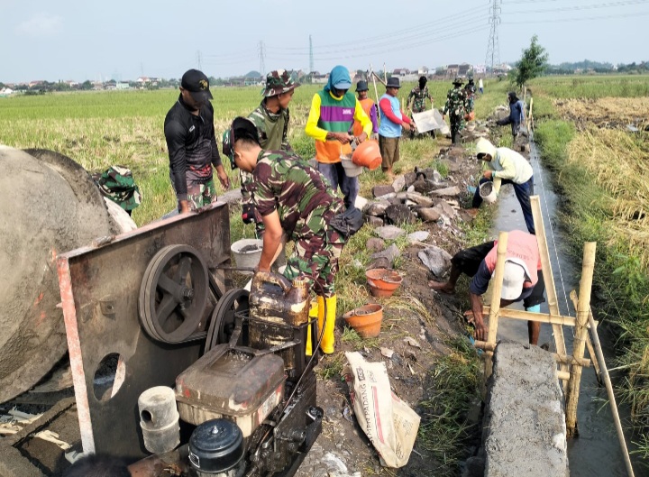 Sukoharjo - Tepat hari ke empat setelah upacara pembukaan Satuan Tugas (Satgas) TNI Manunggal Membangun Desa (TMMD) Reguler ke - 120 Kodim 0726/Sukoharjo terus kerjakan sasaran fisik pembuatan talud di Dukuh Pabrik,Desa Wirun, Kecamatan Mojolaban, Kabupaten Sukoharjo, Minggu (12/05/2024).