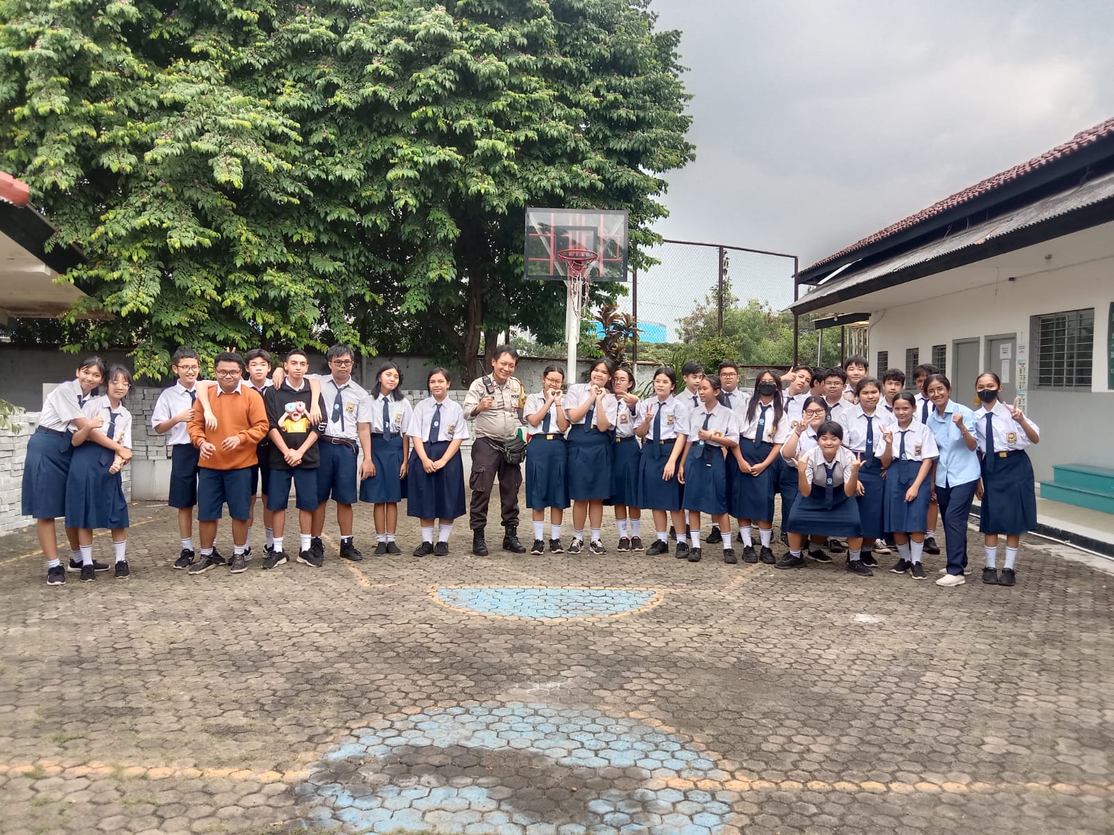 Jakarta Barat - Bhabinkamtibmas Kelurahan Sukabumi Selatan Polsek Kebon Jeruk, Bripka Endi Toro, melaksanakan program Polisi Goes To School dengan mengunjungi SMP LEMUEL yang terletak di Jl. Pos Pengumben Lama RT 04 RW 05, Kelurahan Sukabumi Selatan, Kecamatan Kebon Jeruk, Selasa, 14/5/2024.