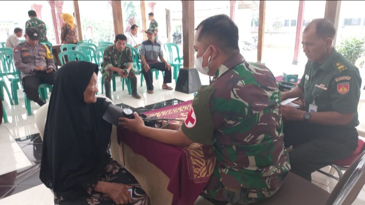 Boyolali - Satgas TNI Manunggal Membangun Desa (TMMD) Sengkuyung Tahp II Kodim 0724/Boyolali memberikan pelayanan kesehatan kepada warga di Desa Gunung Kecamatan Simo Kabupaten Boyolali, Rabu ( 15/05/24).