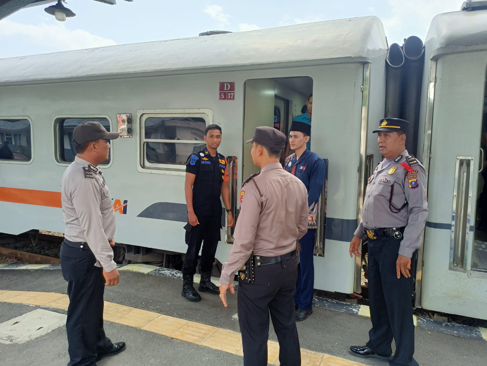 Tebing Tinggi - Utamakan keselamatan bagi para penumpang dari tindak kriminal maupun tindak pidana di perjalanan, Kasat Binmas Polres Tebing Tinggi AKP BSM Tarigan dan personel Satuan Binmas melaksanakan sambang ke Polsuska di Stasiun Kereta Api Jalan Imam Bonjol Kota Tebing Tinggi, Kamis (16/05/24).