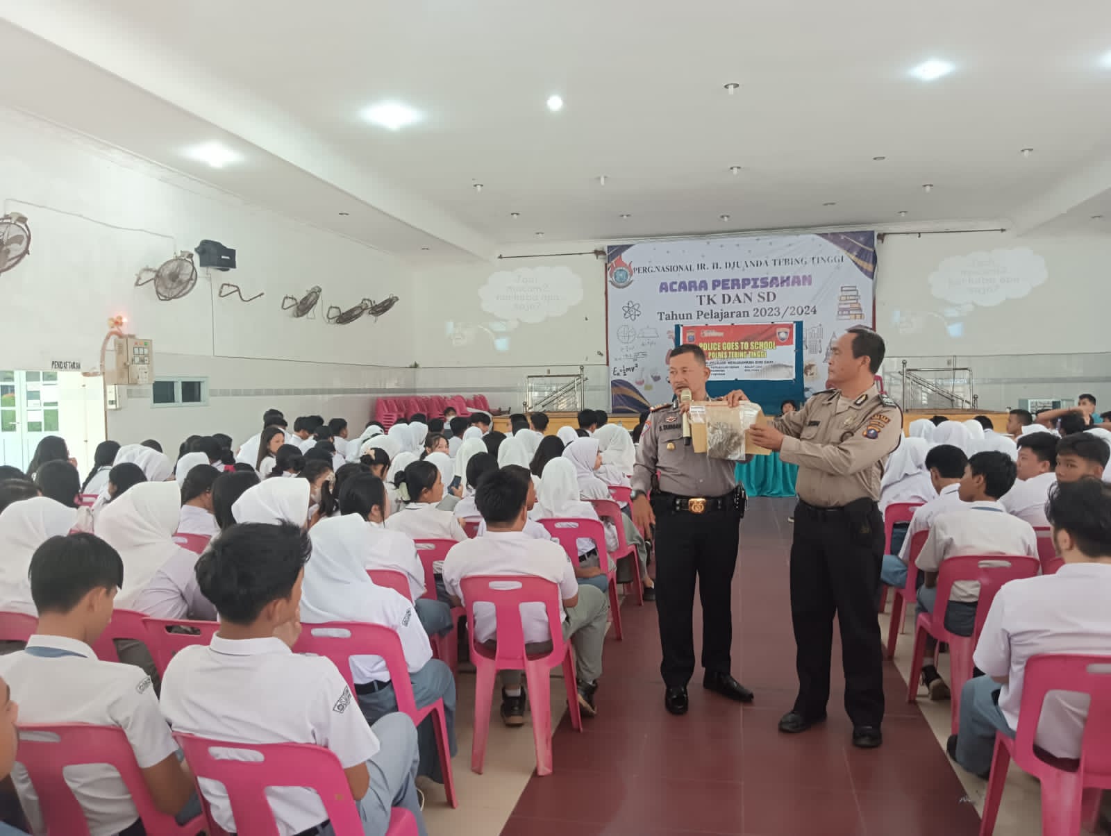 Tebing Tinggi - Satuan Binmas Polres Tebing Tinggi yang dipimpin Kasat Binmas AKP BSM Tarigan melaksanakan kegiatan Police Goes To School kepada pelajar dalam rangka RAN PIJAR (Rencana Aksi Nasional Peningkatan Kesejahteraan Anak Usia Sekolah dan Remaja) di SMA Ir.H. Juanda Jalan Thamrin Kota Tebing Tinggi, Sabtu (18/05/2024).
