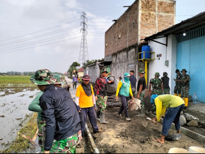Sukoharjo - Anggota Satuan Tugas (Satgas) TNI Manunggal Membangun Desa (TMMD) Reguler Ke-120 Kodim 0726/Sukoharjo “TMMD Wujud Sinergi Membangun Negeri” terus bersemangat dalam menyelesaikan sasaran fisik TMMD di Dk Pabrik, kecamatan Mojolaban, Kabupaten Sukoharjo, Jawa Tengah, Sabtu (25/05/24).