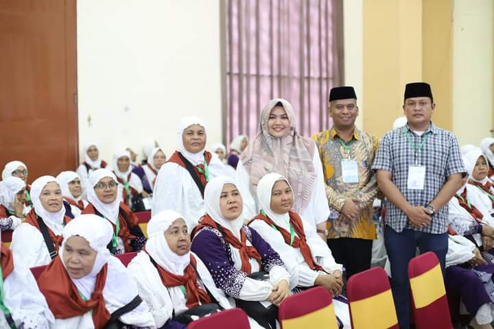 Wakil Bupati Madina Atika Azmi Utammi Nasution, dalam kesempatan tersebut memastikan kondisi kesehatan jamaah calon haji asal Madina dan melakukan dialog.