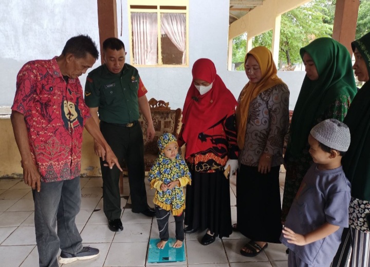 Dalam kegiatan ini, Babinsa bersama tenaga kesehatan melaksanakan pemeriksaan Kesehatan kepada Ibu dan Anak sebagai upaya pencegahan Stunting.