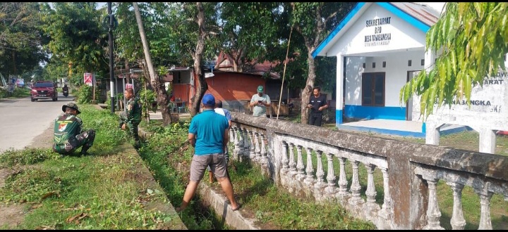 Pada kegiatan pembersihan saluran air tersebut, Babinsa bersama warga saling bahu membahu untuk membersihkan lingkungan dari tumpukan rumput dan sampah.
