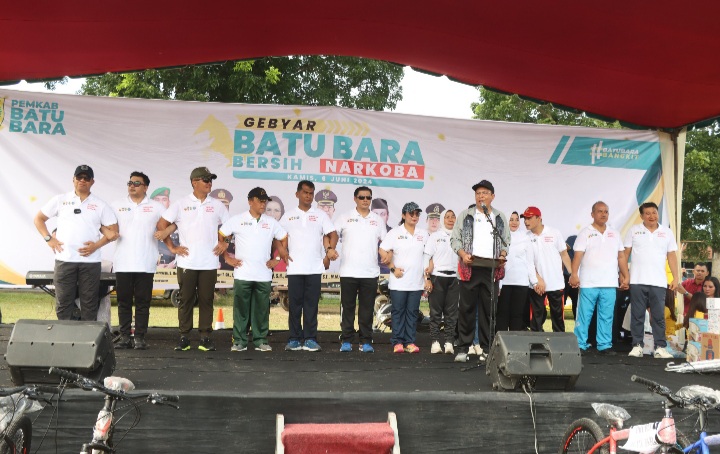 Batu Bara - Ribuan masyarakat bersama Forkopimda Batu Bara kompak mendeklarasikan perang dengan Narkoba pada acara Gebyar Batu Bara Bersih Narkoba. Kegiatan itu digelar di Lapangan Bola Kaki Blok 8, Kelurahan Lima Puluh, Kecamatan Lima Puluh, Kabupaten Batu Bara, pada Kamis (06/6/2024), sekitar pukul 07.00 wib.