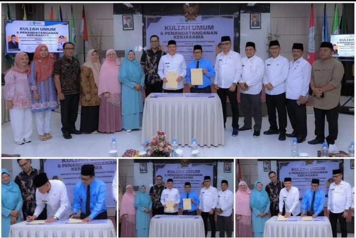 UM Natsir Award Kategori Tokoh Publik Peduli Pendidikan dan Agama diberikan oleh Rektor Universitas Muhammad Natsir kepada Sabar AS Bupati Kabupaten Pasaman setelah memberikan kuliah umum di Kampus tersebut, Jumat (07/6/2024) Aula UM Natsir Bukittinggi.