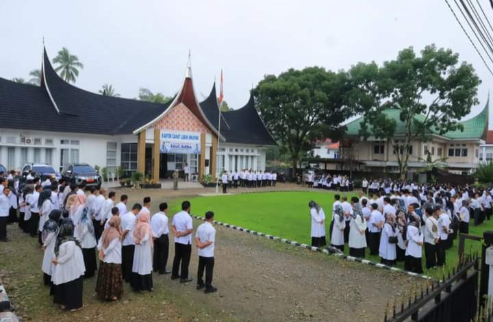 Pasaman - Bupati Pasaman Sabar AS pimpin apel pagi yang di ikuti Sekretaris Daerah Kabupaten Pasaman, Staf Ahli, Asisten, Ketua MUI, Ketua Baznas dan Kepala OPD Pemkab Pasaman, Camat Lubuk Sikaping, Forkopimca dan Wali Nagari se-Kecamatan Lubuk Sikaping beserta staf kantor camat, pegawai puskesmas dan Korwil Pendidikan Kecamatan Lubuk Sikaping, Rabu (12/6/2024).