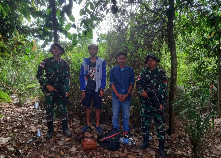 Sanggau - Prajurit Yonkav 12/BC yang bertugas sebagai Satgas Pengamanan Perbatasan (Pamtas) RI-Malaysia berhasil mengamankan dua orang pelintas batas ilegal di Desa Sebungan, Kecamatan Sajingan Besar, Kabupaten Sambas, Kalbar, Rabu (12/06/2024).