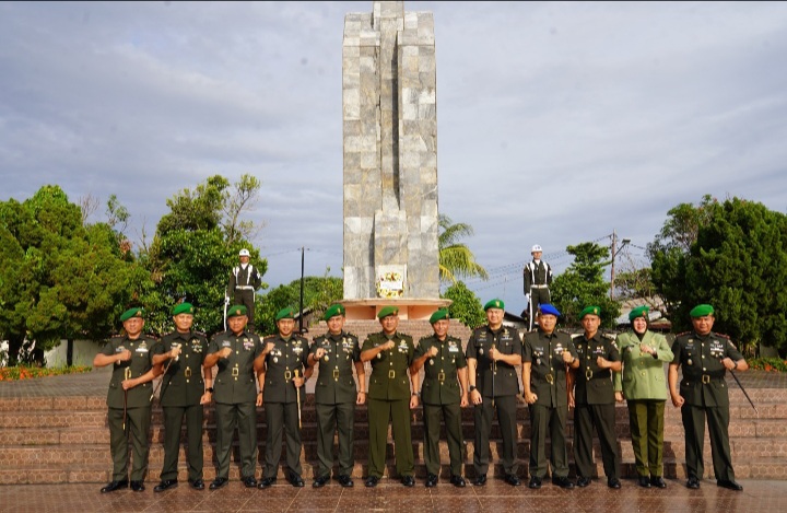 Padang - Dalam rangka menyambut HUT Ke - 74 Kodam I/Bukit Barisan, Kasipers Kasrem 032/Wbr Kolonel Caj Taufik, S.Sos mewakili Komandan Korem 032/Wbr memimpin acara Ziarah Rombongan dan Tabur Bunga di Taman Makam Pahlawan (TMP) Kusuma Negara, Kota Padang, Kamis (13/6/2024).