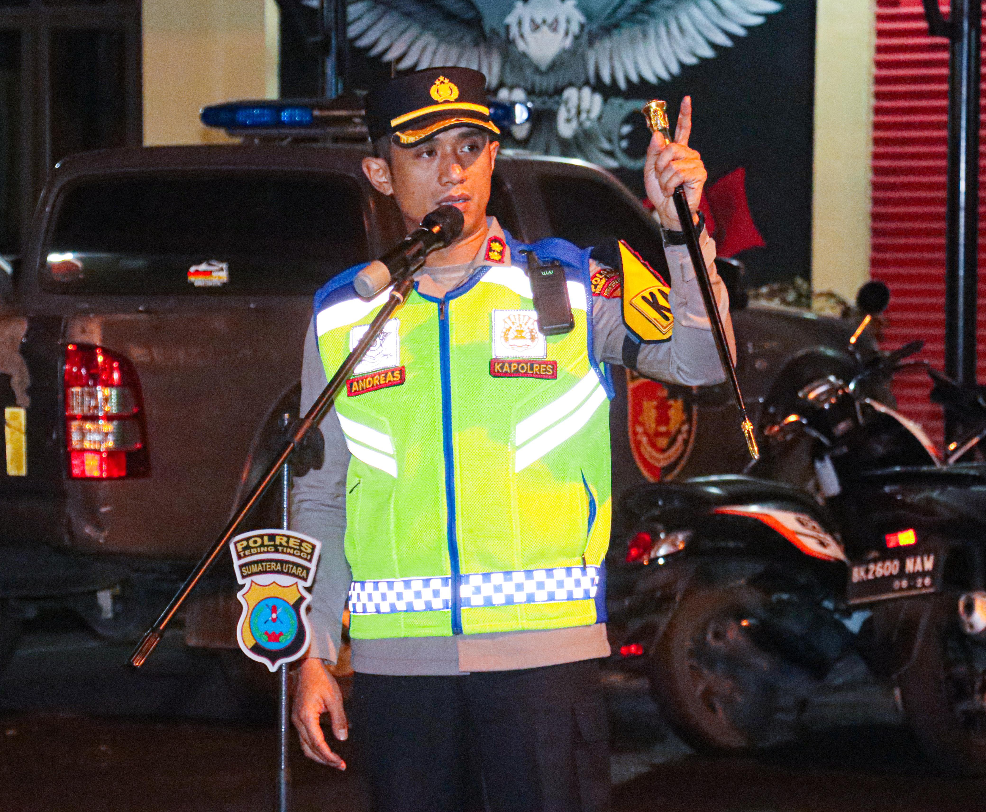 Tebing Tinggi - Kapolres Tebing Tinggi AKBP Andreas Tampubolon kembali memimpin pelaksanaan patroli skala besar untuk pemberantasan geng motor dan penindakan balap liar dalam rangka menjaga situasi kamtibmas diwilayah hukumnya, Rabu (12/06/24) sekira pukul 23.00 Wib.
