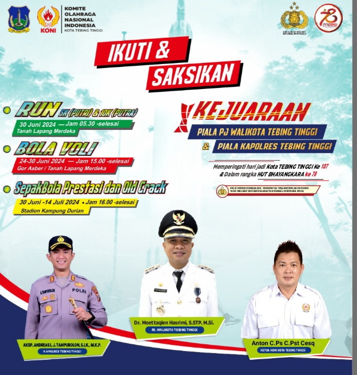 ‘’Pelaksanaan lomba ini menjadi agenda dalam memeriahkan peringatan Hari Bhayangkara ke-78 dan Hari Jadi Kota Tebing Tinggi ke-107," ucapnya.