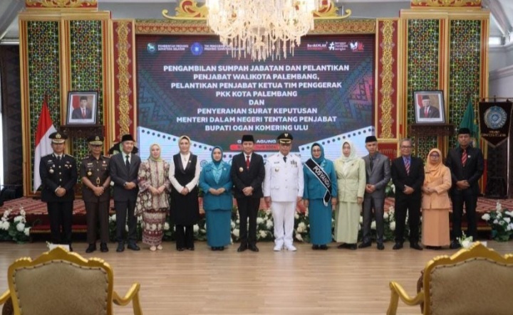 Palembang - Penjabat (Pj) Gubernur Sumatera Selatan, Agus Fatoni melaksanakan Pengambilan Sumpah Jabatan dan Pelantikan Penjabat Walikota Palembang yang baru, Dr. Ucok Abdulrauf Damenta, S.Sos,. Magister Rerum Publicarum yang dilaksanakan di Griya Agung.