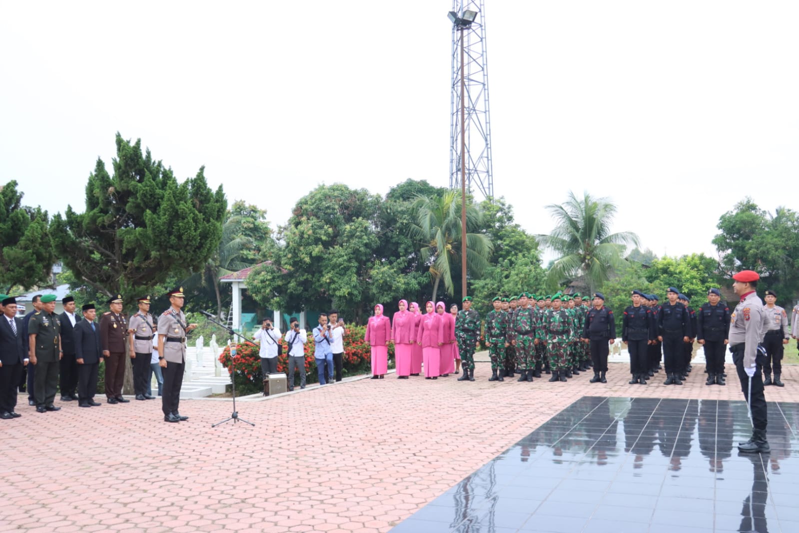 Tampak selaku inspektur upacara Kapolres Serdang Bedagai AKBP Oxy Yudha Pratesta,S.IK dengan didampingi Kapolres Tebing Tinggi AKBP Andreas Tampubolon, S.IK,MKP dan dihadiri Pj Walikota Tebing Tinggi yang diwakilkan Plt Sekda Kamlan Mussyid,SH.MM, Kajari Tebing Tinggi Muchsin SH.MH, Ketua DPRD Kota Tebing Tinggi Basyaruddin Nasution, perwakilan PN Tebing Tinggi Thamrin Tarigan SH, Wakil Ketua Pengadilan Agama Dr Nusra Arini, Dan Yon B Sat Brimob Kompol Bayu.S.IK, Danramil 13 Kapten Inf Yudi Chandra Gurning dan Perwakilan dari Lapas Tebing Tinggi Pebrianto Sirait.