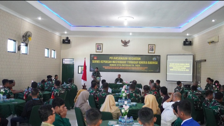 Boyolali - Tim Staf Teritorial Angkatan Darat (Sterad) yang di ketuai Letnan Kolonel Arh M Ufiz SIP M Pol melakukan Survey Kepuasan Masyarakat Terhadap Kinerja Babinsa Kodim 0724/Boyolali yang bertempat di Aula Makodim 0724/Boyolali Jl. Padanaran Desa Tegalmulyo Kecamatan Mojosongo Kabupaten Boyolali, Selasa (25/06/2024).