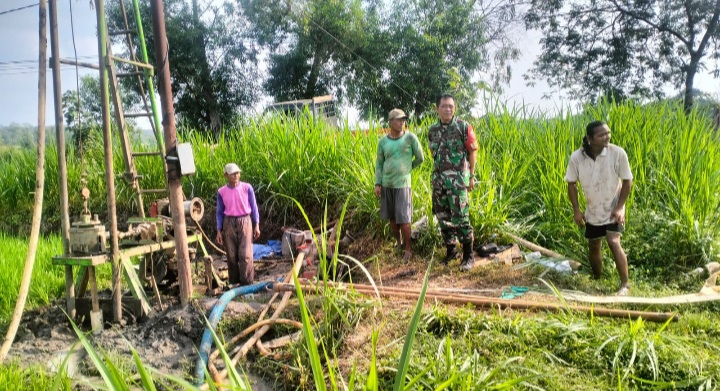 Boyolali - Bentuk perhatian dan kepedulian terhadap warga binaan terutama petani, Babinsa Koramil 10/Sambi Kodim 0724/Boyolali Serka Doni Susanto memantau kegiatan warga dalam pembuatan sumur bor guna untuk pengairan sawah yang bertempat di Desa Nglembu Kecamatan Sambi Kabupaten Boyolali, Sabtu (29/06/2024).