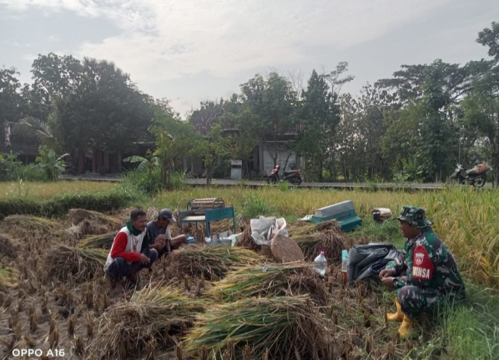 Wujud dukungan TNI khususnya prajurit kewilayahan yaitu Babinsa dalam mendukung ketahanan pangan, dengan Semangat ikut serta terjun langsung ke sawah bantu para petani desa binaannya saat memanen padi, inilah yang dilakukan oleh Babinsa kepada para petani warga desa binaannya.