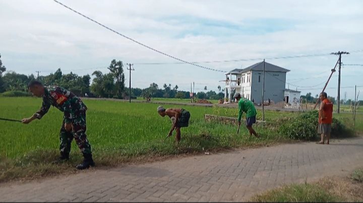 Gowa - Babinsa Koramil 1409-08/Bontonompo Serka Rizal bersama warga masyarakat melaksanakan kerja bakti pembersihan pinggir jalan di dusun Kokowa Desa Bontobiraeng Utara Kecamatan Bontonompo Kabupaten Gowa, Selasa (02/7/2024).