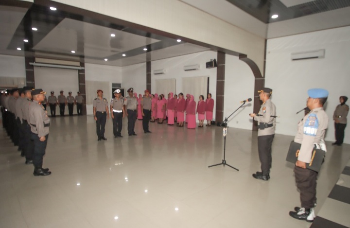 Korps raport dipimpin Kapolres Sergai, AKBP Oxy Yudha Pratesta, dan dihadiri Wakapolres Kompol Damos C Aritonang beserta para PJU dan Kapolsek jajaran, dan Ketua Bhayangkari Cabang Polres Sergai Ny Septya Oxy beserta jajaran.
