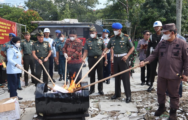 Pangdam Tanjungpura Bersama Orjen TNI Musnahkan Barang Bukti Sabu 21,028 Kg di Otmil II-06 Pontianak Jumat, 05/07/2024 | 04:15