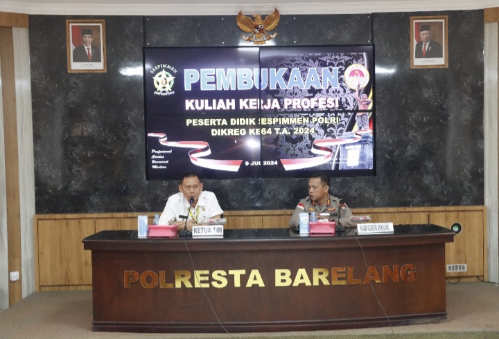 Batam - Peserta Didik Sespimmen Polri Dikreg Ke-64 T.A. 2024 melakkulisanakan Kuliah Kerja Profesi di Polresta Barelang bertempat di Ruang Rapat Lantai 3 Mapolresta Barelang, Selasa (09/07/2024).
