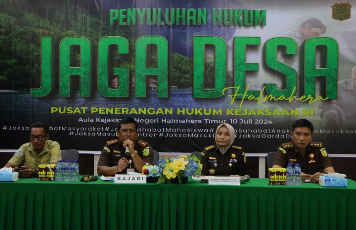 Kegiatan penyuluhan hukum Jaksa Sahabat Masyarakat mengenai Jaksa Garda Desa (Jaga Desa) ini dilaksanakan di Aula Jaksa Agung Singgih, Kantor Kejaksaan Negeri Halmahera Timur, Jl. R. Soeprapto No. 3, Desa Soagimalaha, Kecamatan Kota Maba, Kabupaten Halmahera Timur, Rabu (10/7/2024).