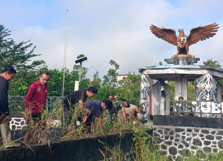 Kapuas Hulu - Dalam rangkaian kegiatan Patroli Terkoordinasi (Patkor) Seri 1 di wilayah Nanga Badau Kalbar dan gabungan Malaysia, personel satgas pamtas RI-Malaysia bersama personel Batalyon 701 RAMD TDM, serta seluruh elemen instansi Badau, dibantu oleh masyarakat desa Janting melaksanakan kegiatan karya bhakti bersama membersihan lingkungan terpusat di Tugu Kedaulatan NKRI Badau, Kecamatan Badau, Kabupaten Kapuas Hulu, Kalimantan Barat. Jumat.
