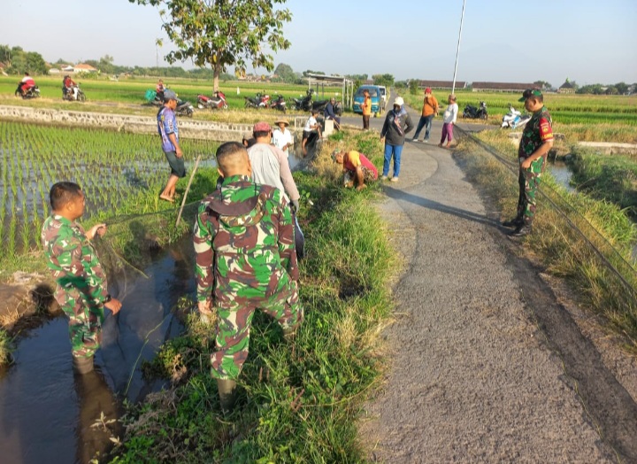 Boyolali - Dalam upaya menekan populasi tikus sawah, 5 ( lima) Babinsa Koramil 09/Sawit Kodim 0724/Boyolali Yang dipimpin Pelda Sukisyanto bersama petani dan warga, melakukan pembasmian massal memburu tikus sawah di wilayah Desa Guwo Kajen Kecamatan Sawit Kabupaten Boyolali, Sabtu (13/07/2024).