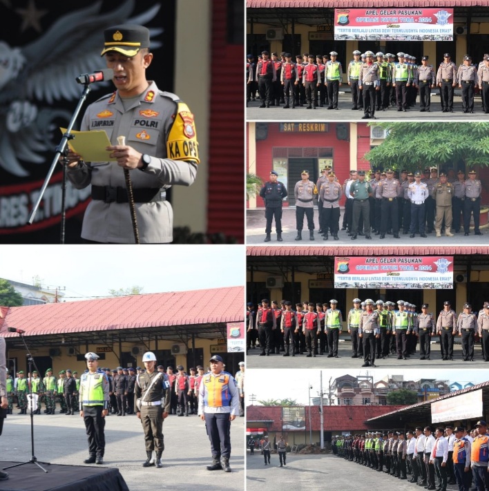 Tebing Tinggi - Kapolres Tebing Tinggi AKBP Andreas Tampubolon memimpin pelaksanaan apel gelar pasukan dalam rangka Operasi Patuh Toba 2024 diwilayah hukum Polres Tebing Tinggi dengan mengusung tema Tertib Berlalulintas Demi Terwujudnya Indonesia Emas, bertempat di lapangan apel Mapolres Tebing Tinggi, Senin (15/07/2024).