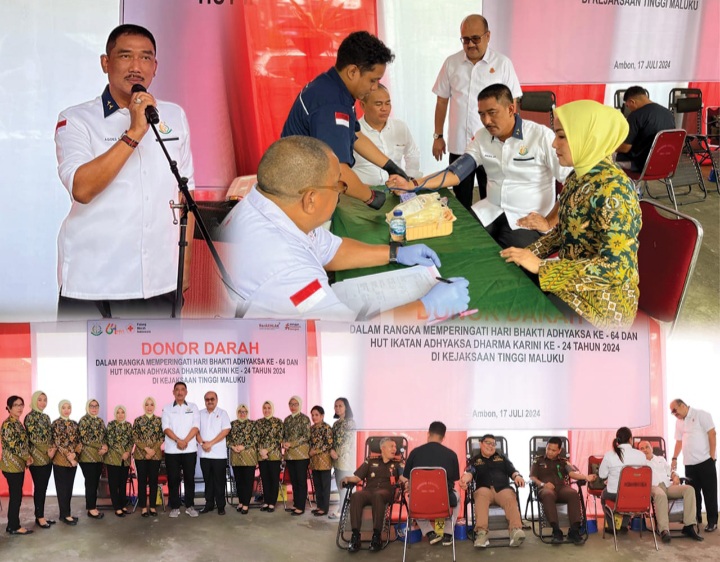 Kepala Kejaksaan Tinggi Maluku yang membuka kegiatan tersebut dalam sambutannya menyampaikan kegiatan Donor Darah ini dilakukan dalam rangka memperingati Hari Bhakti Adhyaksa ke-64 dan HUT Ikatan Adhyaksa Dharmakarini ke-24 Kejaksaan Republik Indonesia, dengan harapan agar manfaat dari kegiatan ini dapat membantu masyarakat Kota Ambon dan sekitarnya yang sementara dalam perawatan di Rumah Sakit dan kekurangan darah.