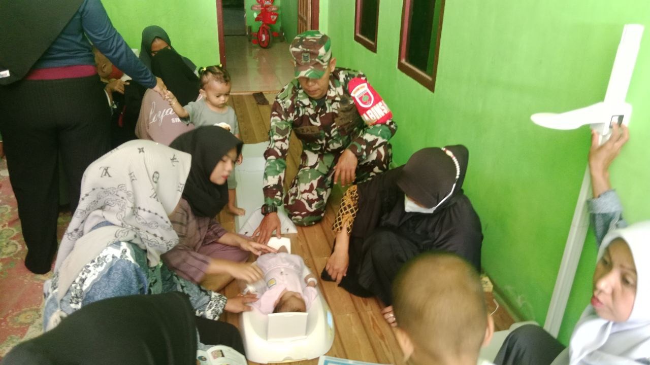 Dengan melakukan penimbangan berat badan Balita, Imunisasi, pemberian Vitamin, serta asupan makanan tambahan, serta mengontrol kesehatan ibu hamil, yang pada akhirnya untuk mewujudkan masyarakat yang sehat dan sejahtera,” tutup Serka Rizal.