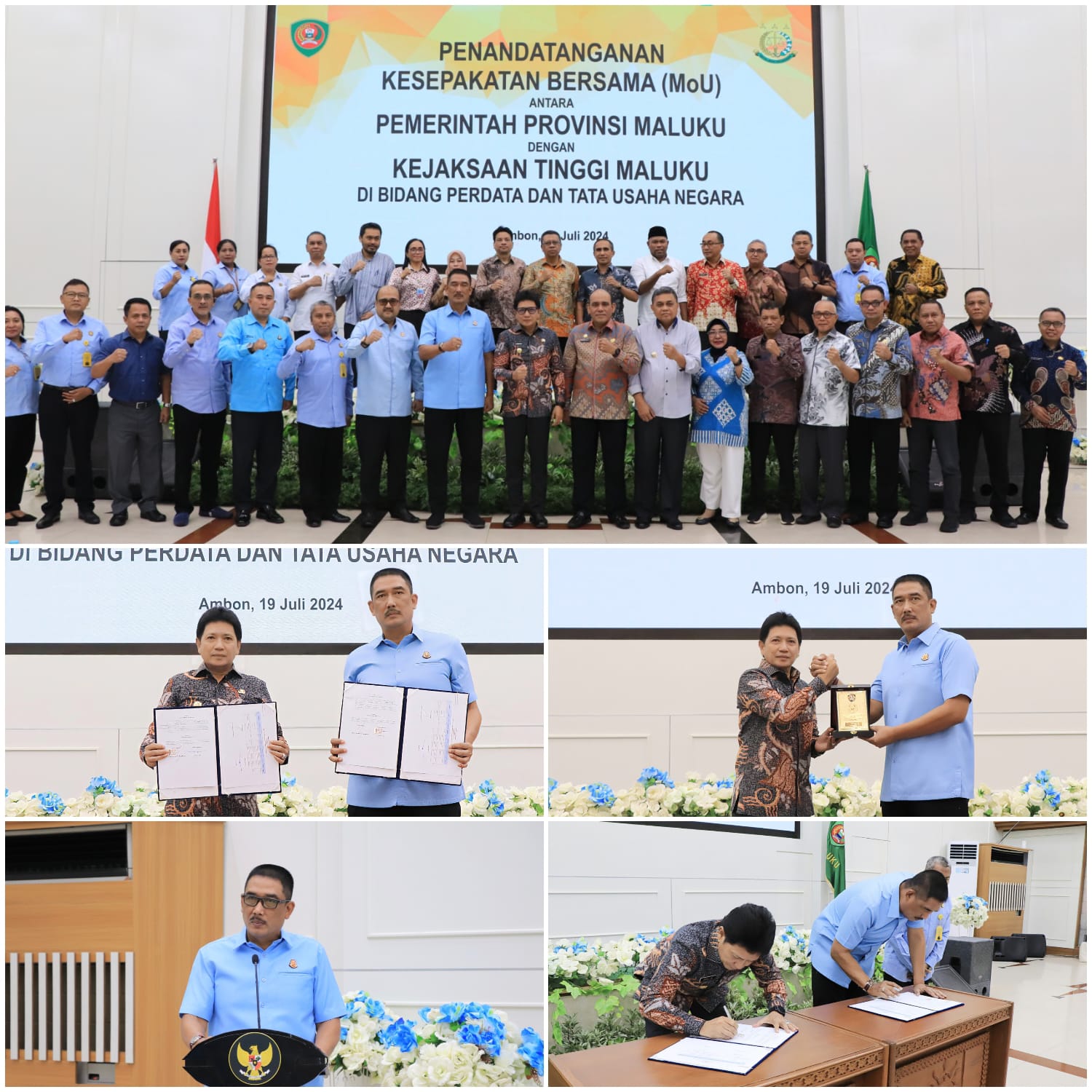Pemprov Maluku dan Kejati Maluku Teken MoU Pencegahan potensi masalah hukum Bidang Perdata dan TUN, pada Jumat (19/7/2024)