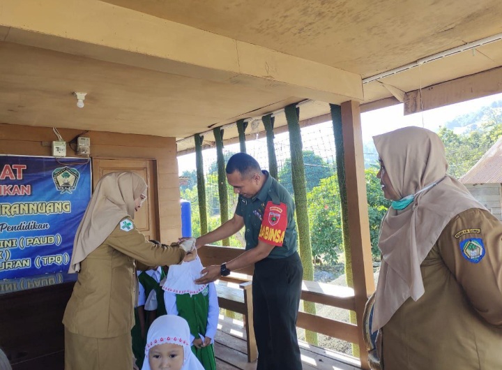 Gowa - Dalam rangka mendukung dan menyukseskan program Pemerintah yakni pencanangan Pekan Imunisasi Nasional (PIN) Polio secara serentak dan tersebar, Babinsa Koramil 03 Bontomarannu, Kodim 1409/Gowa, Korem 141/Tp, Serka Malusul Madi melaksakan pendampingan ke petugas atau tenaga kesehatan dari Puskesmas Bontomarannu pada saat melaksanakan tugas pemberian tetes polio kepada anak umur 0 sampai 7 tahun 11 bulan bertempat di Posyandu Desa Nirannuang Kecamatan Bontomarannu Kabupaten Gowa (23/7/2024).