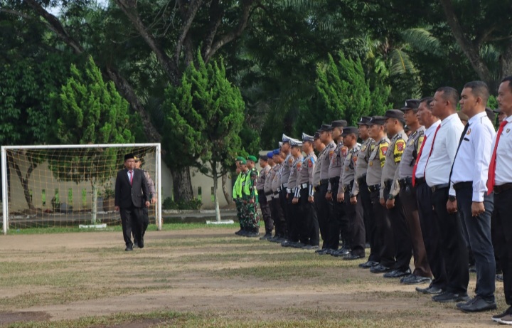 Bupati Serdang Bedagai H. Darma Wijaya saat pimpin apel kesiapan antisipasi bencana alam Karhutla tahun 2024 pada hari Kamis (25/07/2024) di Lapangan hijau Polres Sergai.
