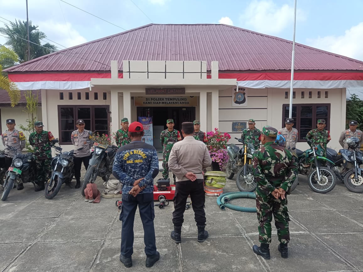 Polsek Tempuling bersama TNI dan MPA melaksanakan apel bersama dan pengecekan serta simulasi pengetesan alat pemadam Kebakaran, pada hari Sabtu (27/7 2024).