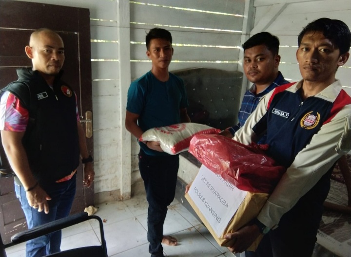 Kapolres Kuansing, AKBP Pangucap Priyo Soegito, S.I.K, M.H., melalui Kasat Res Narkoba Polres Kuantan Singingi, AKP Novris H Simanjuntak, SH, MH, mengatakan "Sebanyak dua paket sembako dibagikan kepada penerima. Paket sembako tersebut berisi Beras, Telur, Minyak, Gula, Mie instan, Sarden, Teh, Kopi, Susu dan Satu unit kipas angin," jelas Kasat.