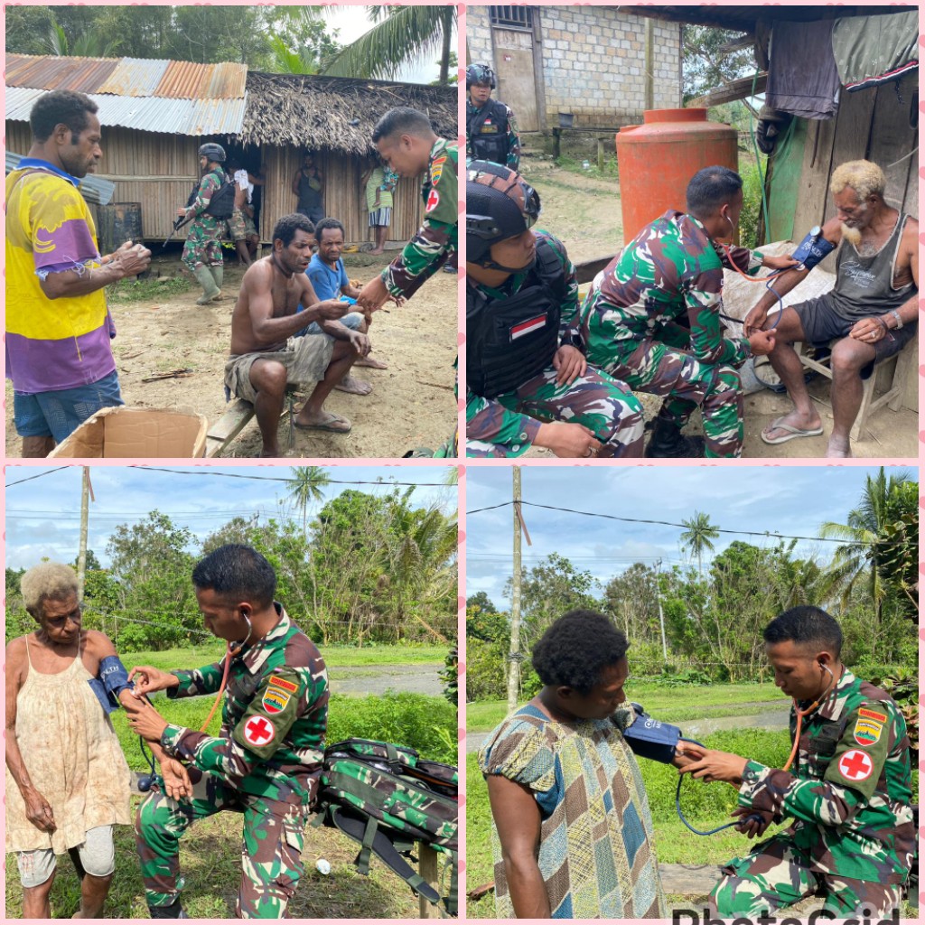 Keerom - Satgas Pamtas Statis RI-PNG Yonif 122/TS Pos Kalipay melaksanakan kegiatan pelayanan kesehatan kepada para lansia dan masyarakat di perbatasan kampung Pund, Distrik Waris, Kabupaten Keerom, Papua Senin (05-08-2024).