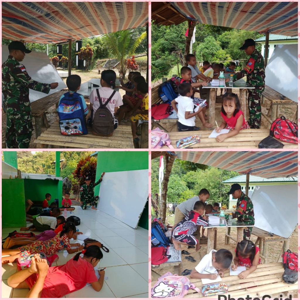 Sanggau - Prajurit TNI Satuan Tugas Pengaman Perbatasan (Satgas Pamtas) Indonesia-Malaysia Yonkav 12/BC turut membantu memajukan pendidikan di perbatasan, anggota pos Panga membantu memberikan pendidikan kepada anak-anak disekitaran pos di dusun Panga, desa Panga, Kecamatan Sekayam, Kabupaten Sanggau, Kalbar, Selasa, 06 Agustus 2024.